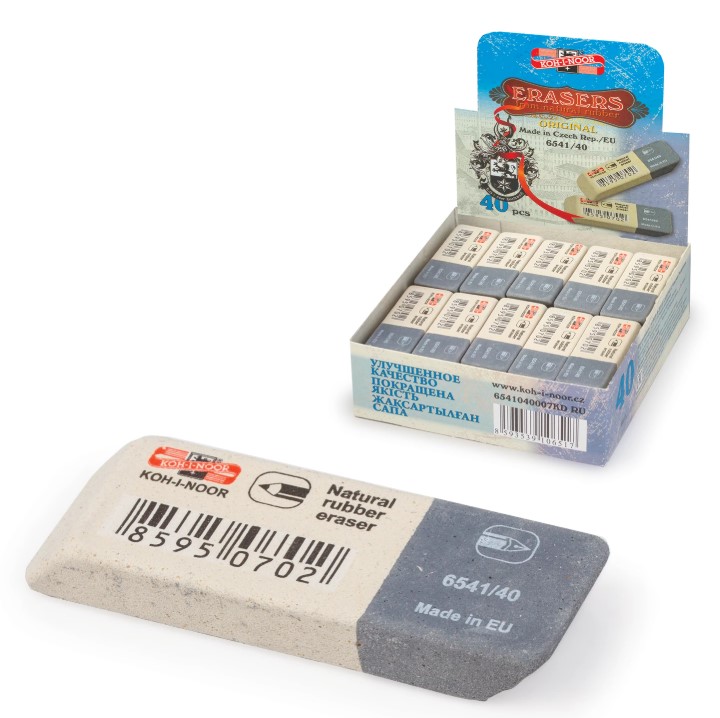 —Ластик KOH-I-NOOR 6541/40, 57x19,5x8 мм, бело-серый, прямоугольный, 225397