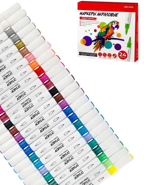 Акриловые маркеры двустор, набор 24 шт, 2 белых цв, 7 металлик цв, в к;к, МП-4863