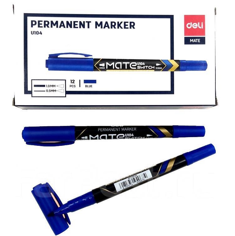 —Маркер перманентный двухсторонний 'Deli', синий цвет, 1.0;0.5 мм, U104