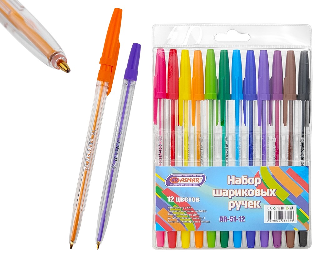 —Набор шариковых ручек, ASMAR, 12 цветов, AR-51-12