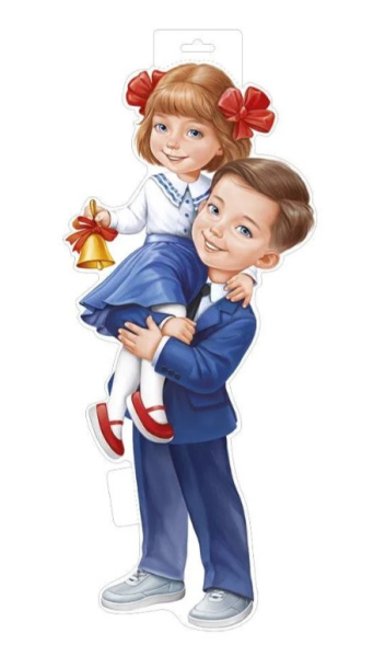 Плакат 'Мальчик-школьник с девочкой на руках с колокольчиком', 59.477.00