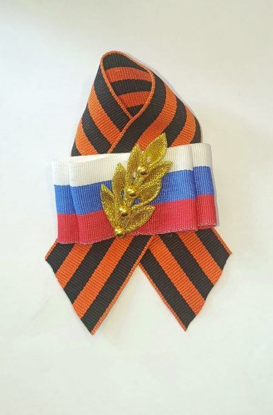 Значок Брошь-3D 'Колосок золотой с бусинками' с георгиевской лентой, 2973