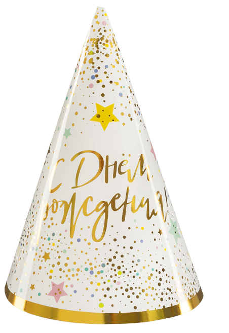 —Колпаки, С Днем Рождения (сверкающие блестки), Металлик, 16 см, 6 шт. в упак, 6233919