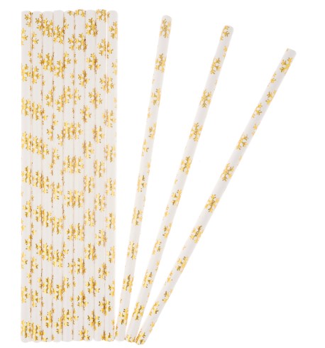 Трубочки для коктейлей, Снежинки, Белый;Золото, Металлик, 12 шт. в упак, 6233656