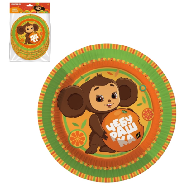 —Набор тарелок бумажных 18 см ,'Чебурашка', (6 шт;уп), 307309