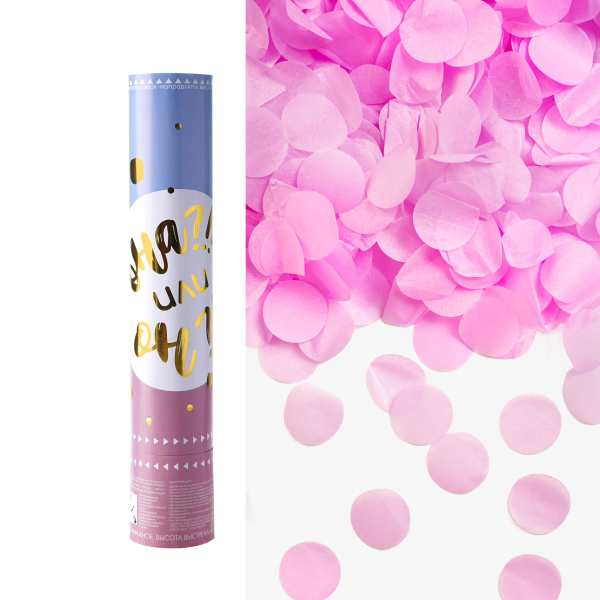 —Пневмохлопушка (12;30 см), Гендер пати, круги тишью, розовый 1 шт, 823141