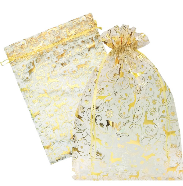 —Мешочек из органзы НГ 'Олени', 350x250 мм, 1000 г, текстильная новогодняя упаковка, 15080058