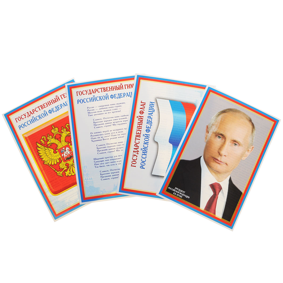 Набор плакатов А4 Сфера 'Символика Российской Федерации' (герб, гимн, флаг, президент),7153