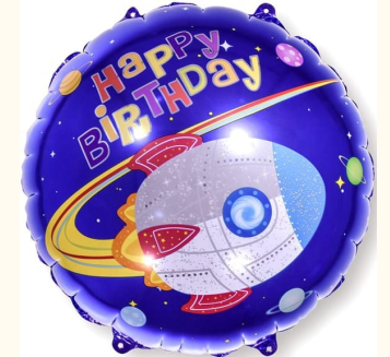 —Шар фольга (41''/104 см) Круг, С днем рождения (ракета в космосе), 1 шт., 190866