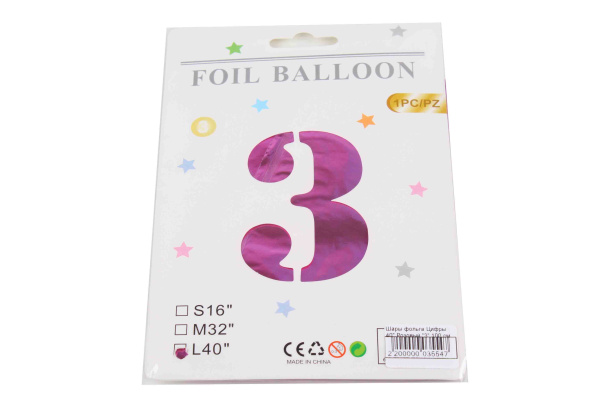 Шары фольга Цифры 40' Розовый '3' 100 см.