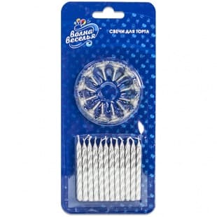 —Свечи для торта Волна Веселья 'Серебро' 6 см 24 шт 620074S