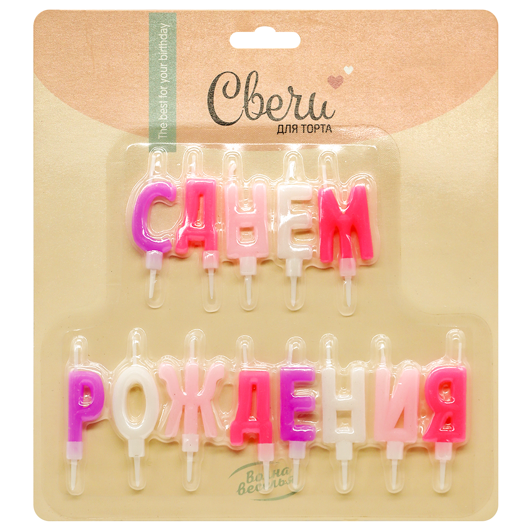 Свечи Буквы С Днем Рождения, Ассорти для девочки, 2~4 + 2 см, (1 шт;уп), с держат, 803092