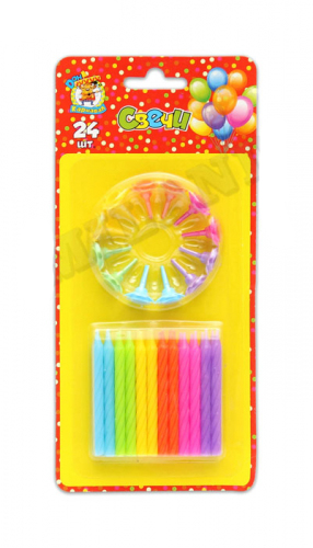 Свечи для торта с подставками 'Радужные', 24 шт., Миленд, картон. уп., европодвес, С-0469