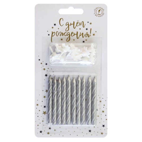 Свечи тортовые классические 'Металл' серебро с держ, 13 см, (6 шт;уп), 0934