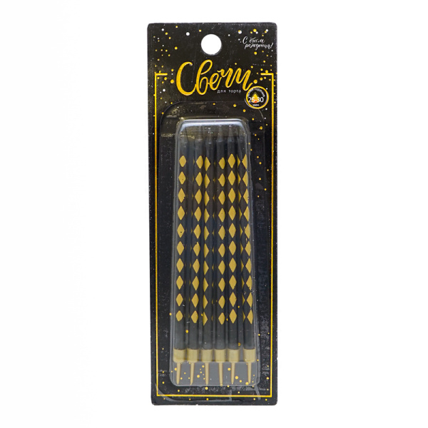 Свечи тортовые классические XL 'Золотые Ромбы', черные с золотой, 183554