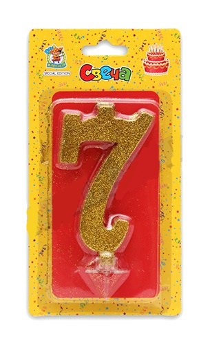 —Свеча для торта 'Цифра 7. Золотой глитер' Миленд, картон. уп., европодвес, С-1899
