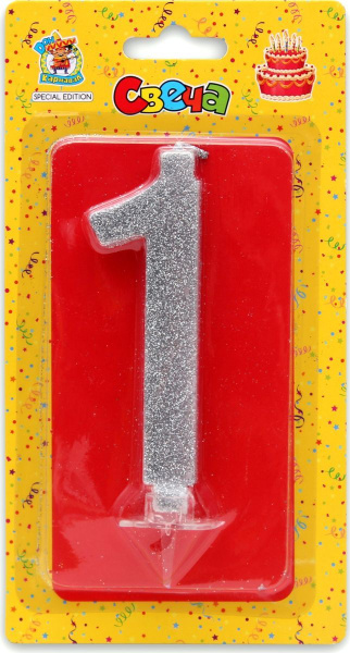 —Свеча для торта 'Цифра 1. Серебряный глитер' Миленд, картон. уп., европодвес, С-1883