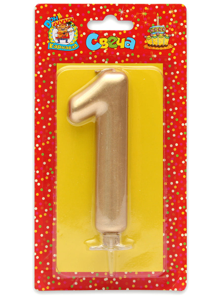 —Свеча для торта 'Цифра 1. Золотой металлик' Миленд, картон. уп., европодвес, С-1863