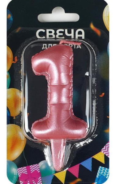 —Свеча на шпажке цифра 1 'Шары' розовая пастель, 3141