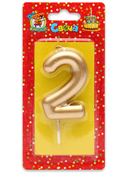 —Свеча для торта 'Цифра 2. Золотая' Миленд, картон. уп., европодвес, С-1800