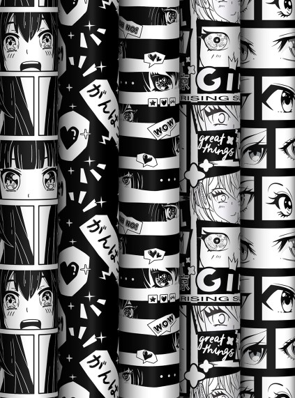 —Упаковочная бумага глянц. 70х100 см, MESHU. Anime, 80 г;м2, ассорти, 5 дизайнов, MS_62813