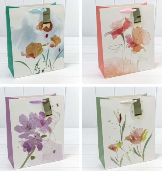Пакет подарочный с тиснением 'Цветы акварель', микс 26х32х13, 000191С