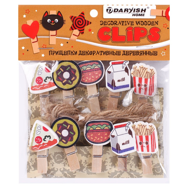 Прищепки декоративные Darvish 'Фастфуд', дерево, 10 шт.;уп., DV-H-1077