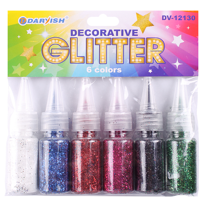 —Декоративные блёстки Darvish 6 цв, 6 шт, пластиковые колбы с дозатором, европодвес, DV-12130
