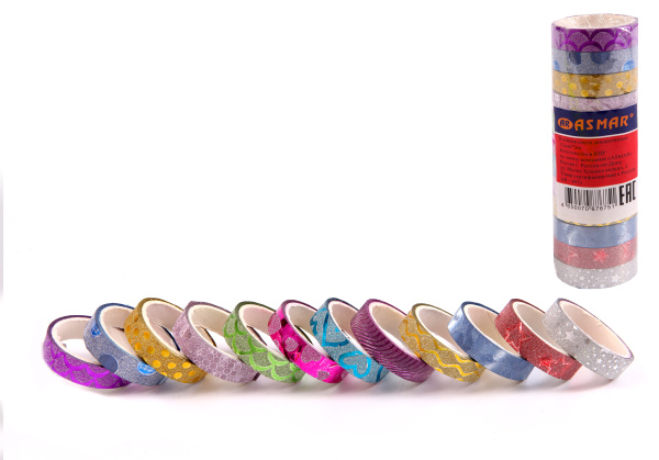 Скотч декоративный 12 мм х 3 м ,150 mic , с рисунком , (12 шт;уп), AR-4411