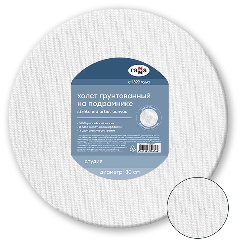 —Холст на подрамнике Гамма 'Студия' диаметр 30 см круглый , 100% хлопок , среднее зерно, 1009202079