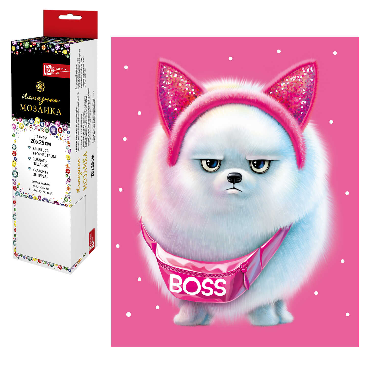 —Алмазная мозаика БОСС ШПИЦ, 20~25 см, 12 цветов страз, 68586