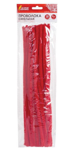 —Проволока синельная для творчества Остров Сокровищ 12 шт, красная, пушистая, 0,6х30 см, 661533