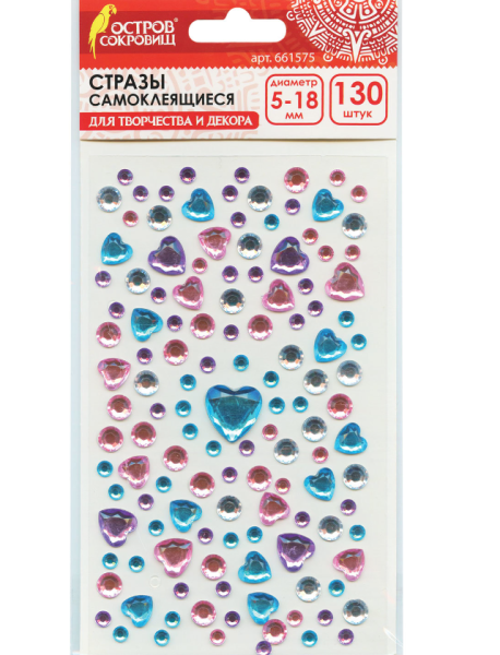 —Стразы самоклеящиеся 'Сердечки', 5-18 мм , 130 шт , ассорти, 661575